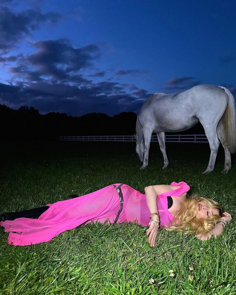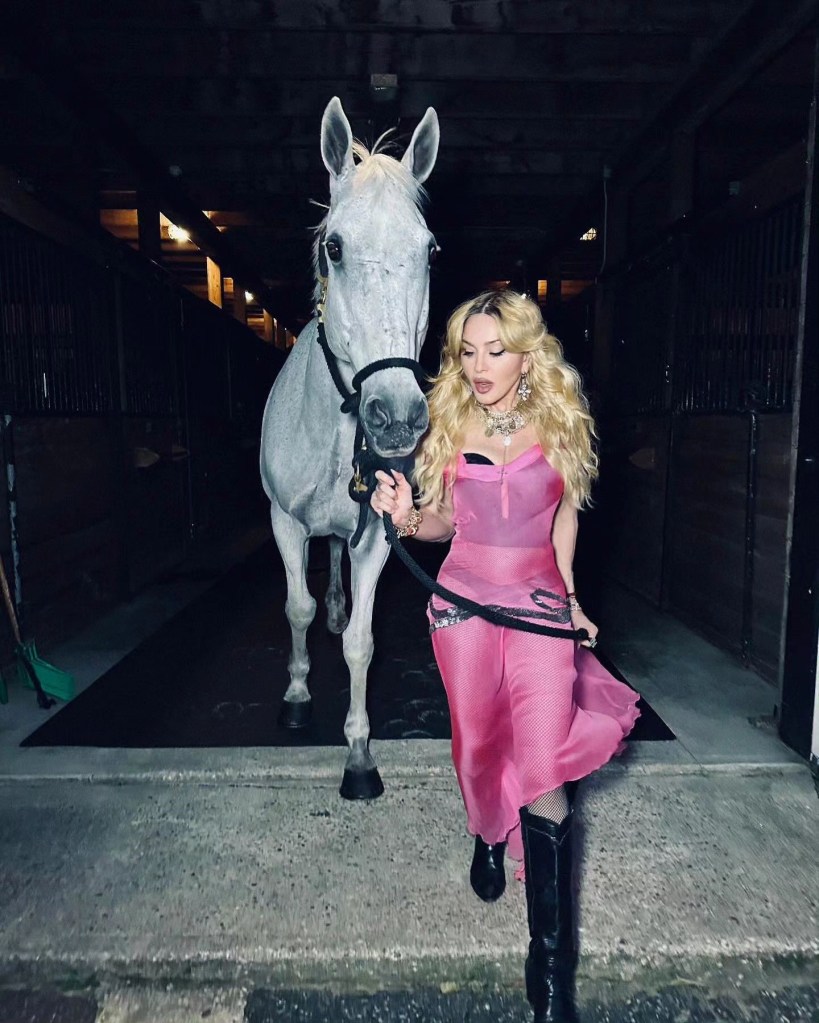 Retornando de Londres, Madonna decidió pasar el fin de semana en su mansión en la zona de Bridgehampton,en The Hamptons, New York. Allí aprovechó para ver a su caballo predilecto y lucir un sugerente y sexy vestido rosa y de paso, porqué no, tomarse unas fotografías con su amigo Ricardo Gomes. En cuenta de Instagram Madonna escribió: «adiós a los días largos y a las calurosas noches de verano. Adiós verano, nunca te olvidaré… P.D: mi caballo es un caballo deportivo irlandés llamado Roller; él ha sido tan bueno conmigo y aún cabalga fuerte, pero estoy buscando por uno nuevo… ¿alguna sugerencia?».