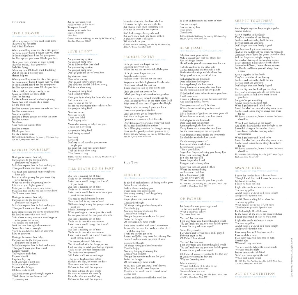 «Like a Prayer» fue editado por Rhino Music el 06 de septiembre de 2024 para celebrar los 35 años del lanzamiento original del LP en 1989. La pre venta estuvo disponible desde el 23 de julio. El disco se realizó en vinilo 180grs en color plateado mate. El track list era idéntico al disco original. Se lanzó en USA con una edición que incluía un póster desplegable con una imagen de Herb Ritts de la sesión de fotos para la tapa del disco. Por otro lado, al igual que sucedió con «True Blue», se editó también en Rep.Checa pero en esta versión no se incluyó el póster.