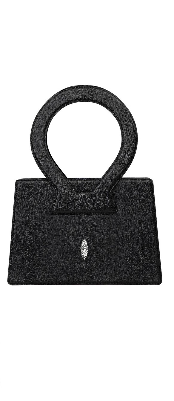 - Bolso grande modelo «Ana» con estampado de mantarraya negra y manija geométrica estructural.