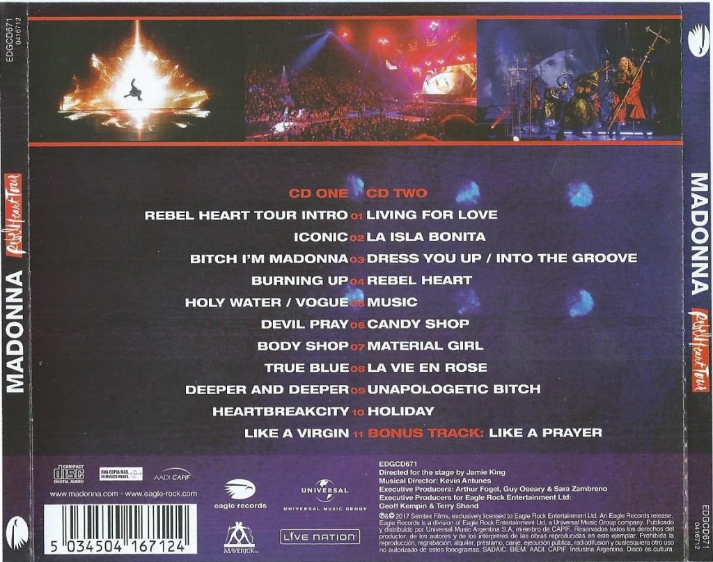 - NOTA: edición de CD doble en empaque jewelcase con el mismo diseño de portada salvo para Argentina, Chile y Uruguay que presentaban una sútil variación.