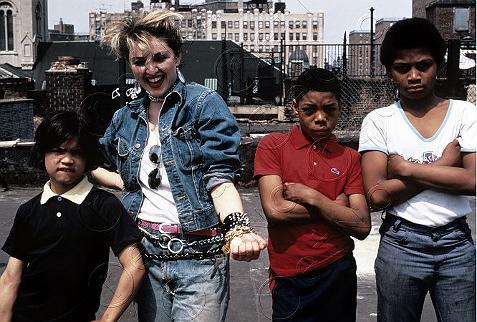 Primero la vemos entre abril y mayo de 1983 en los «Sigma Sounds Studios» junto a «Jellybean» Benitez durante las grabaciones del primer disco. También para esta misma fecha, Madonna había realizado un extenso portfolio fotográfico (el primero de ellos) con el fotógrafo Richard Corman. En ambas fotos, vemos que Madonna luce la chaqueta en versión original, sin inscripciones y con mangas.
