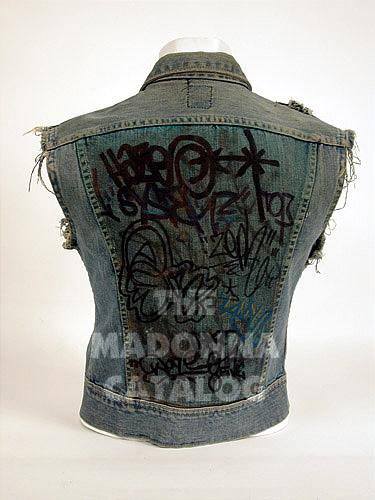 Como siempre decimos, los primeros años de Madonna como artista no estuvieron cargados del glamour y la sofisticación de los nombres de grandes diseñadores o firmas de lujo; sin embargo, esta joven supo ingeniárselas para estar siempre a la moda y de alguna manera marcar tendencia. Madonna poseía un guardarropas limitado pero con su astucia e instinto para la moda, ella siempre se mostraba diferente y original. En este caso vamos a hablar de su chaqueta de denim favorita. Con esta prenda la podemos ver durante gran parte de 1983 no solo en actuaciones en vivo sino también en portfolios fotográficos o simplemente usándola en su vida cotidiana. La prenda consiste en una chaqueta de denim marca «Lee». Con un graffiti en el panel trasero que fue añadido a lo largo del tiempo y donde se lee «Wilde Styles» con «Madonna» escrito debajo. La chaqueta fue a subasta con «Sotheby’s» a principios de los 2000 donada por un «conocido» de Madonna.