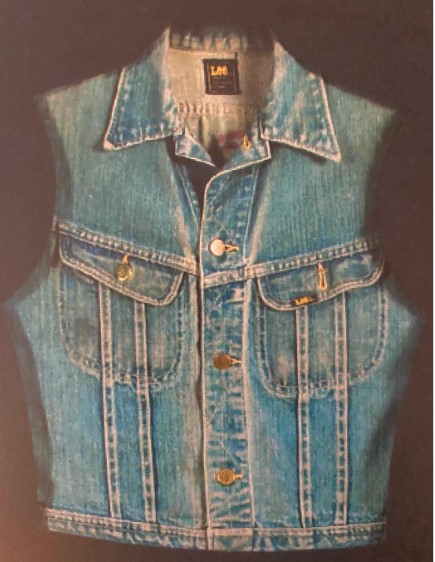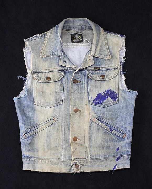 Por otro lado, tenemos una prenda muy similar, que a veces suele confundirse con la anterior. En este caso, es otro chaleco de denim, pero marca «Maverick» intervenido en la parte trasera también con varias inscripciones y que Madonna usó durante el portfolio realizado junto a Martin Burgoyne por Marcus Leatherdale también a mediados de 1983. Puede notarse que las prendas son sutilmente diferente en la parte frontal. Esta prenda fue subastada y vendida por «Julien’s» en febrero de 2008 por U$S 4750 en un lote acompañado de una fotografía y una carta de Madonna.