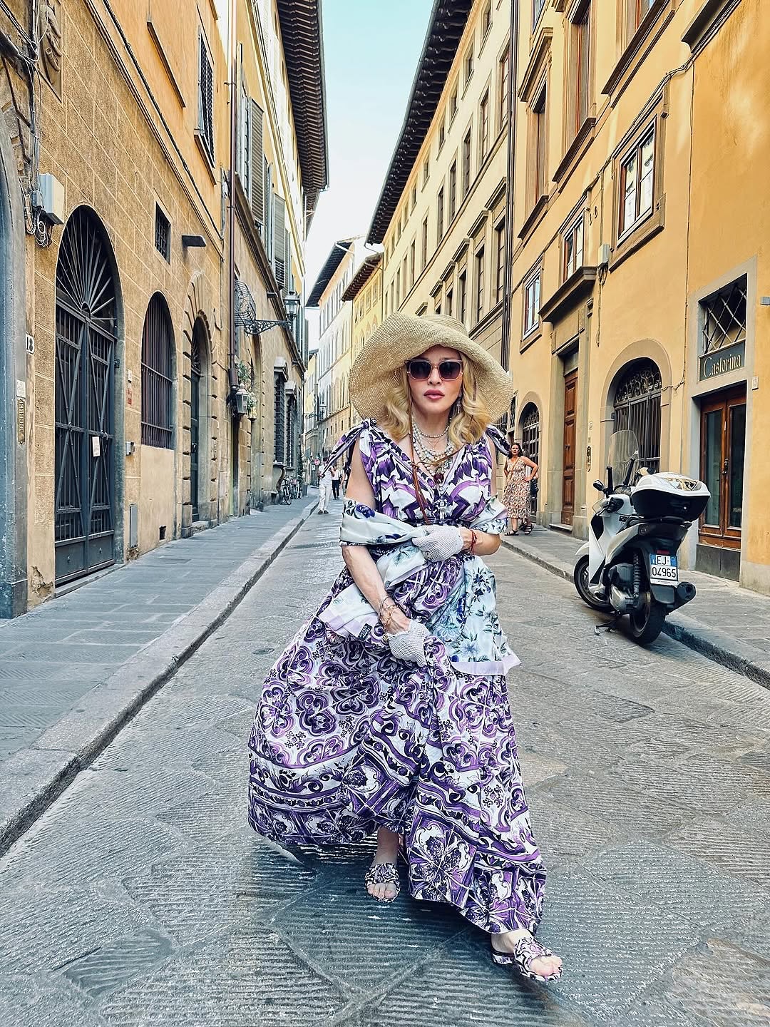 Una vez más, la Divina ha escogido Italia para pasar una semana de vacaciones y realizar todas las celebraciones de su cumpleaños N°67. Ya desde hacía algunos días se veía especulando en las redes que Madonna viajaría a Italia con su familia y que incluso podría unirse y realizar una visita a su amigo, el cantante Sting. Todo el viaje se manejó con un profundo hermetismo y en completo secreto, de hecho, ya nos enteramos de que Madonna estaba recorriendo tierras italianas cuando comenzaron a circular los primeros videos de ella en las redes. El mismo día de su cumpleaños, el 16 de agosto, Madonna fue vista recorriendo las calles de Florencia junto a su novio Akeem Morris, su amiga Debi Mazar y un séquito de acompañantes, en donde también estaba Ingrid Casares; tal vez realizando una breve escala antes de acomodarse en la cercana ciudad de Siena. Madonna lucía de buen humor con un amplio vestido blanco y dos enormes sombreros que la cubrían casi por completo. Las celebraciones de su cumpleaños comenzaron así oficialmente.