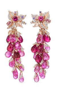 - Pendientes de oro 18k con diamantes y rubíes modelo «Ryby Coralbell» de Anabela Chan.