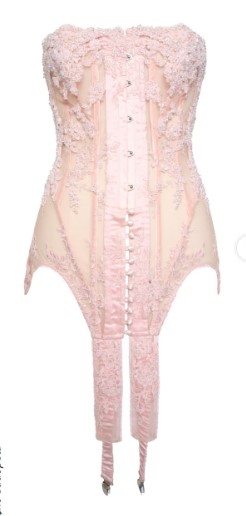 - Corset de seda con encaje en patrones florales en color nude modelo «Kylie» de la firma «Rosamosario».