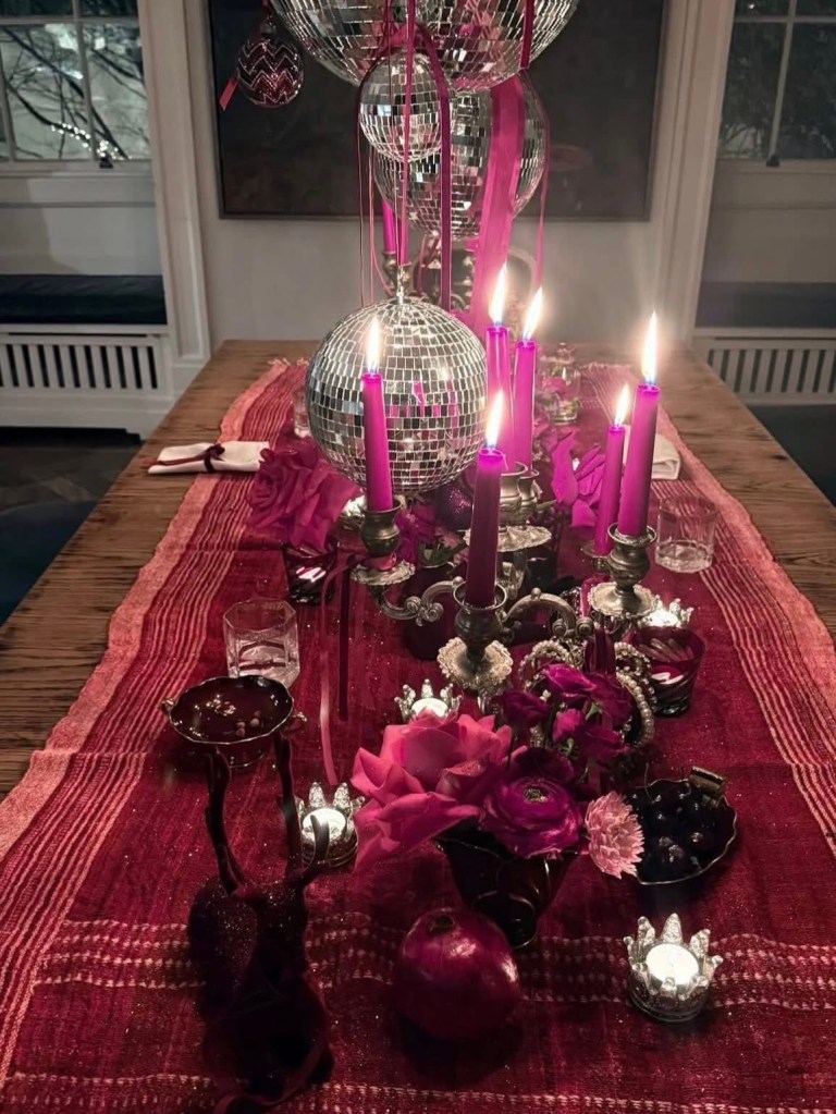 Ya saliendo del glamour de la sesión de fotos realizada para esta ocación, Madonna pasó la Navidad en su casa de Londres acompañada de sus seres queridos más cercanos. En las fotos la vemos luciendo un vestido largo de seda en color rojo con un gran moño en el cuello. La acompañaron, además de su novio Akeem Morris, sus tres hijas, las gemelas Estere y Stella y Mercy James. La mesa navideña completamente decorada en color rojo nos muestra gran cantidad de bolas de espejo, también haciendo alución al nuevo disco que se avecina.