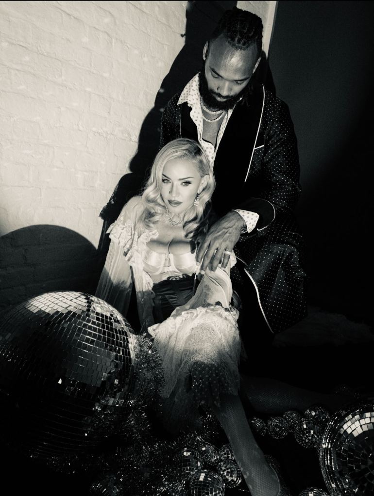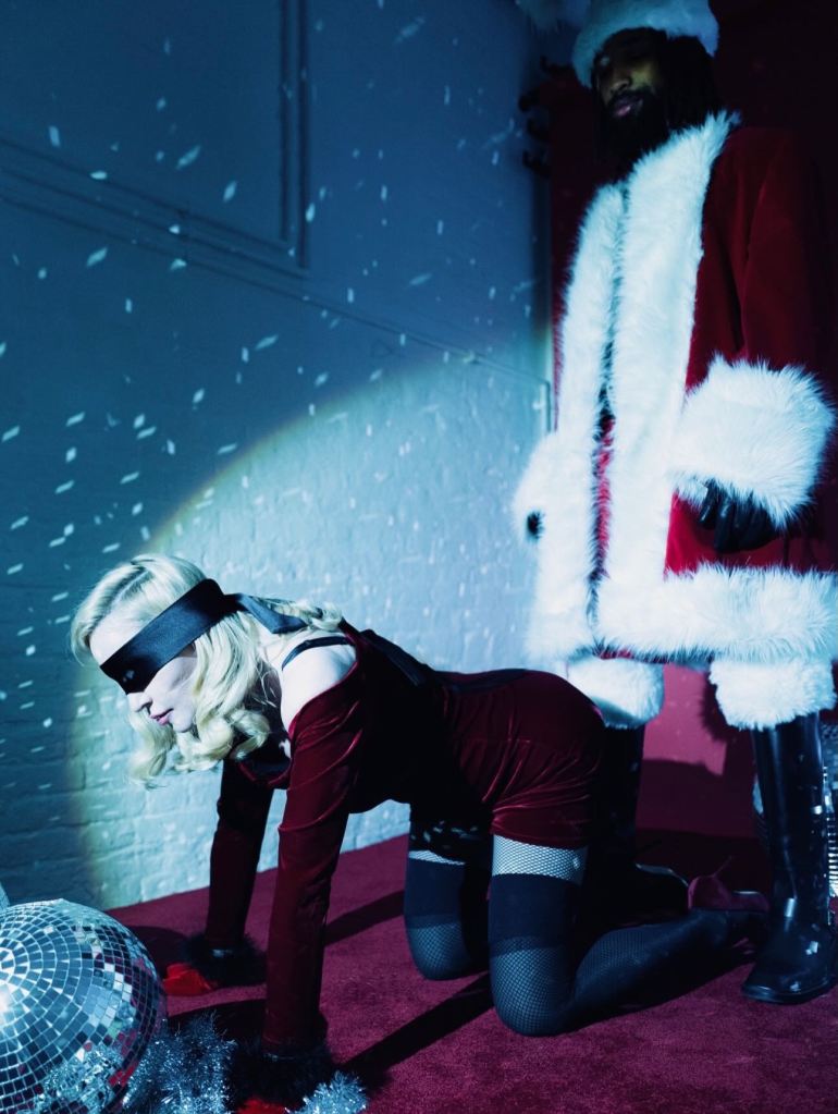 Madonna sigue con su estadía en Londres en donde se ha decido a pasar las fiestas junto a su familia, para esto, nos ha regalado una glamorosa sesión de fotos a cargo de Ricardo Gomes en donde la vemos a ella junto a su novio Akeem Morris posando con diferentes atuendos navideños pero no por eso menos sensuales. En las fotos Madonna luce vestidos de terciopelo en color rojo y guantes con plumas haciendo alusión a la Navidad pero a la vez los combina con ajustados corsets, medias de encaje y portaligas. Por su parte, su novio Akeem Morris, luce un traje de Santa Claus para hacer combinación con ella. Las fotos muestran una fuerte inspiración en el S&M y Bondage, con un sutil estilo vintage años 50s. Algunas de las imágenes nos retrotraen a la famosa sesión fotográfica junto a Katy Perry allá por 2014. Vemos a Madonna y a su novio jugando con vendas en los ojos, boca tapada y poses sujestivas de dominación.