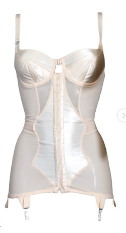 - Corselette modelo «Glamour Nouveau» de la firma «What Katie Did», elaborado a partir de satén y powermesh, con un cierre de gancho y ojo frontal y seis correas de suspensión.