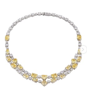 - Pendientes y collar de platino y diamantes amarillos modelo «Canary Spectra» y «Canary Love Heart» respectivamente ambos de «Anabela Chan».