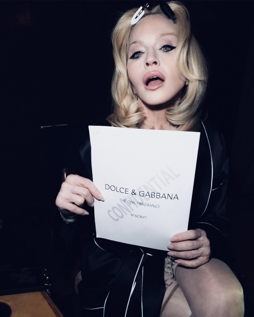La campaña global de «Dolce & Gabbana» (que incluye un portfolio fotográfico y un corto cinematográfico) para la fragancia «The One», «The New Intensities», con Madonna y el actor Alberto Guerra, tuvo un anticipo sorpresa antes de las fiestas en diciembre de 2025. Las primeras imágenes de la campaña aparecieron en inicialmente en las tiendas «Macy’s» de Estados Unidos para más tarde, unirse a la gran mayoría de las tiendas departamentales de Europa y Asia, marcando un nuevo capítulo para la familia de fragancias «The One» de la firma italiana. La última edición de esta serie, «The New Intensities», se describe como una evolución de la icónica fragancia, que fusiona la sensualidad clásica con un toque moderno.
