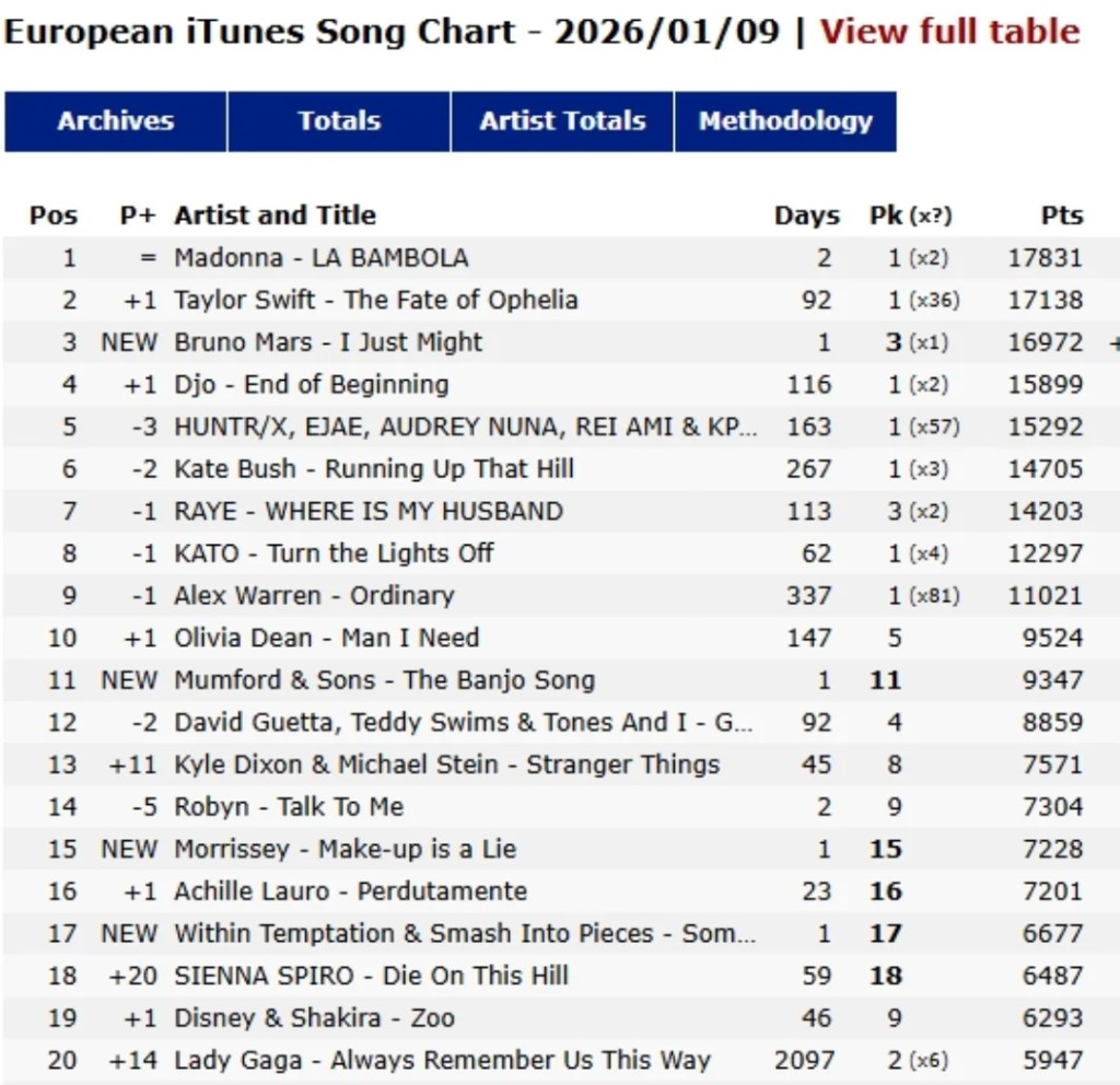 EUROPEAN ITUNES SONGS CHART: 01