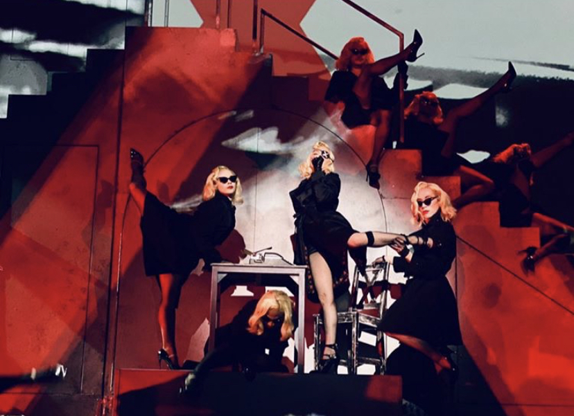 El equipo coreográfico de apoyo que incluía nombres como Damien Jalet, Travis Payne y Megan Lawson, entre otros constituyeron una obra maestra visual con un recorrido por la vida de la Divina en donde el elenco de los bailarines no solo sostiene la potencia física del show, sino que en muchos momentos literalmente se visten como Madonna, ya sea en referencias directas a sus looks del pasado o mediante recreaciones estilísticas que dialogan con décadas de moda pop. Uno de los momentos claves del show, es sin lugar a dudas el final con una canción que no podía ser de otra manera, «Bitch I’m Madonna» en donde 17 bailarines salen vestidos con algunos de sus looks más representativos (algo que nos recuerda mucho a aquel primer homenaje de los Premios MTV VMA de 1999). Pero además, durante todo el show, algunos de los alter egos de Madonna salieron al escenario a interactuar con ella en diferentes momentos.