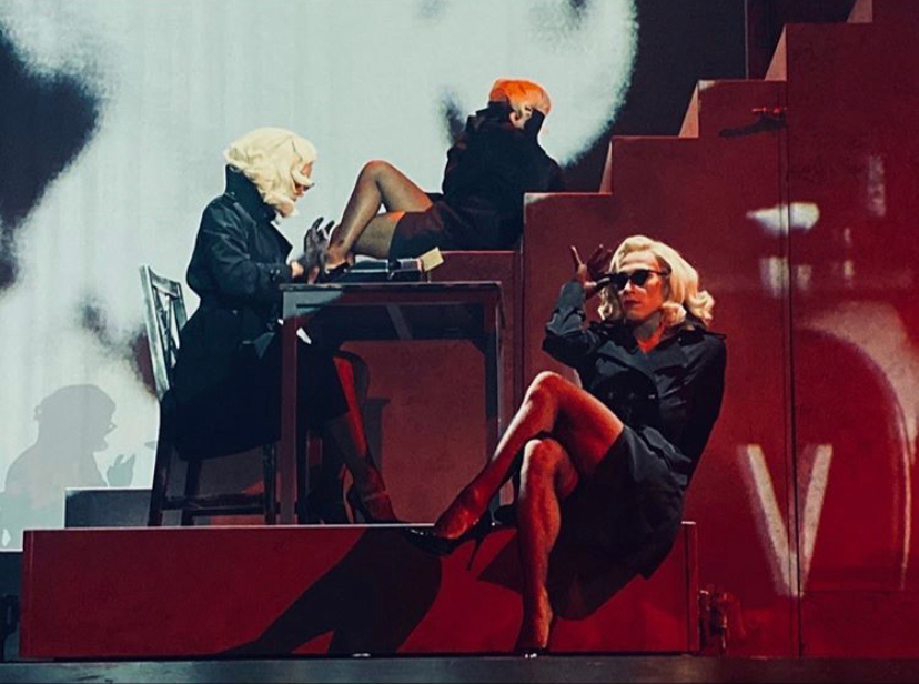 Durante la gira «Madame X Tour» la propuesta de Madonna se volvió más teatral y narrativa, mezclando danza, performance y personajes. El rol fundamental fue el del coreógrafo y creativo Damien Jalet, quien trabajó de cerca con Madonna y con todos los bailarines del tour tanto masculinos como femeninos, para encarnar a una docena de Madonnas en su rol como «Madame X». Aquí, la espía se multiplica para circular por todo el escenario durante la performance de «Vogue». Tapado negro, peluca rubia corta, gafas de sol, todos los bailarines siendo la misma«Madame X» rondando, caminando y moviendose por todo el escenario entre los que se halla la propia Madonna.
