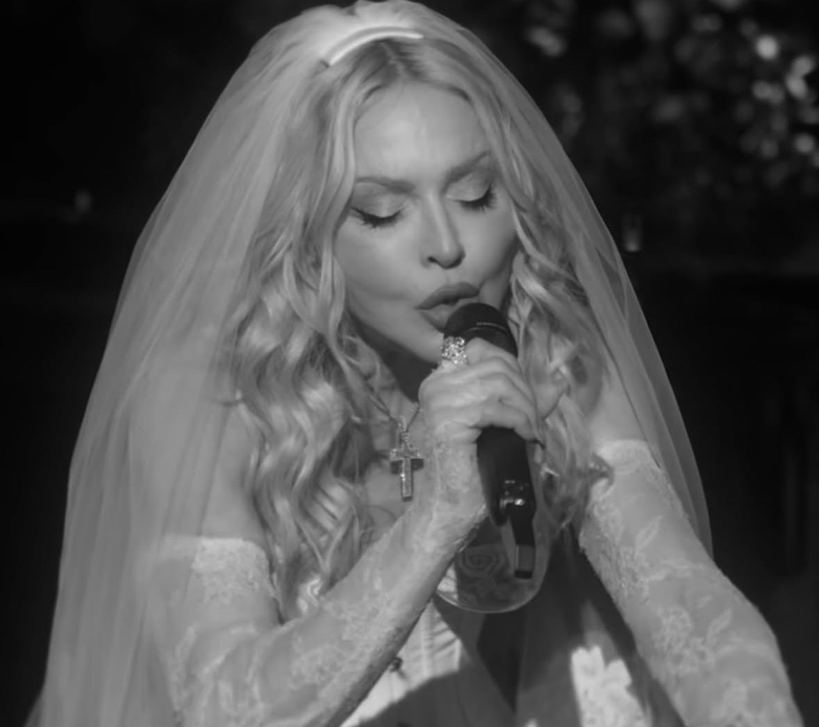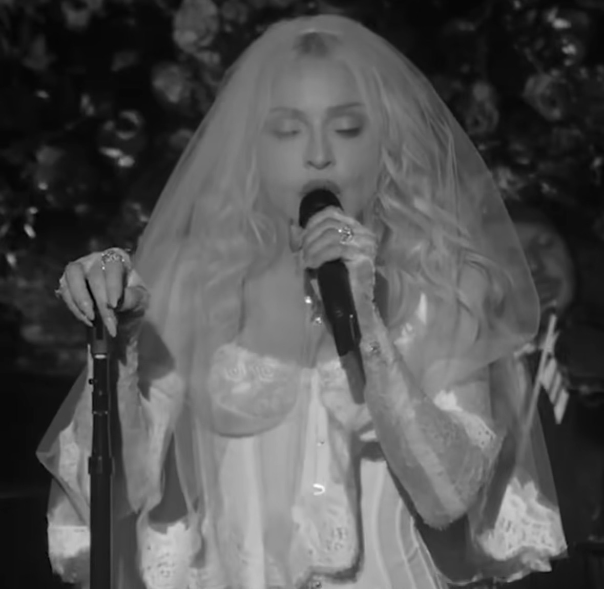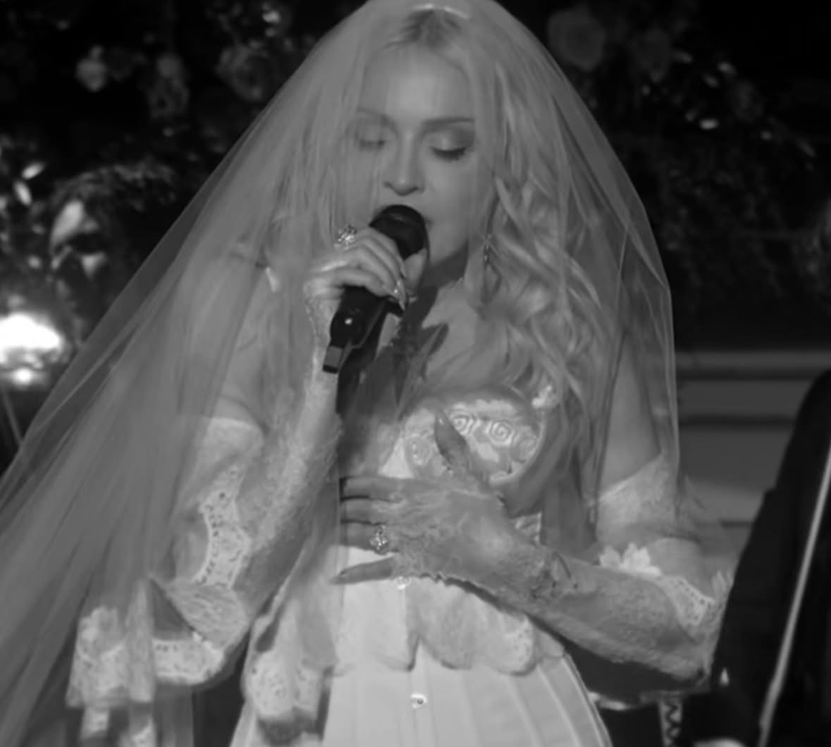 La interpretación fue profundamente emotiva: una orquesta completa acompañó la voz de Madonna, con el productor y músico Stuart Price al piano dirigiendo el arreglo musical. La versión, lenta y dramática, transformó el clásico en una pieza casi operática, donde cada nota resonaba con una intensidad íntima que dejó al público en absoluto silencio mientras Madonna compenetrada interpretaba la canción bajo una lluvia de pétalos de rosa.