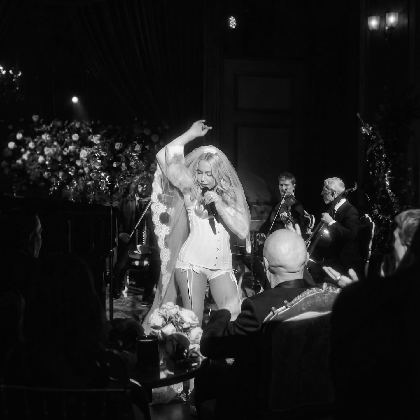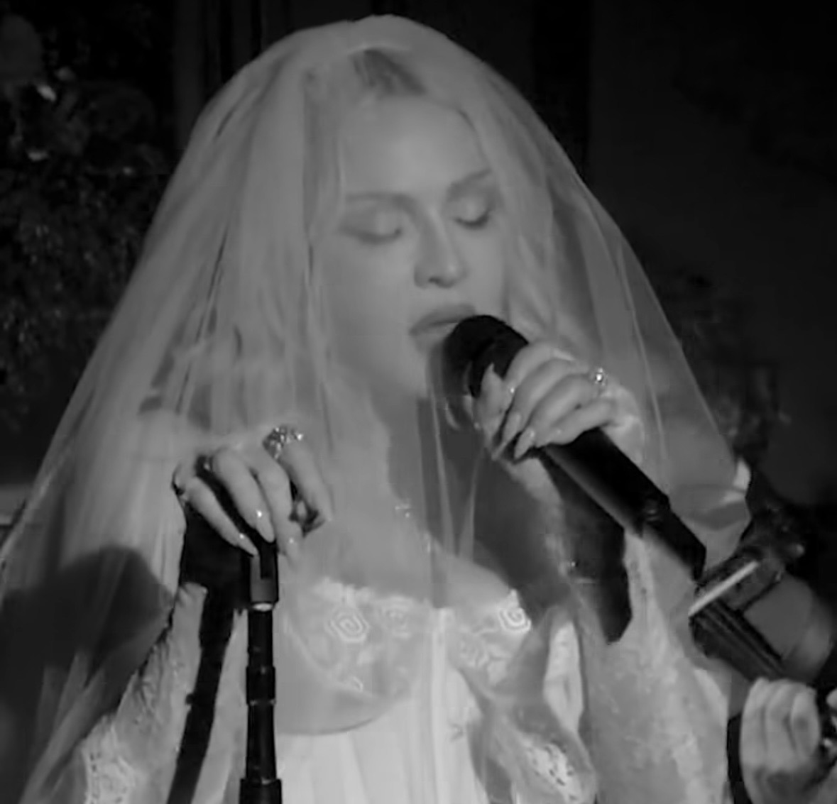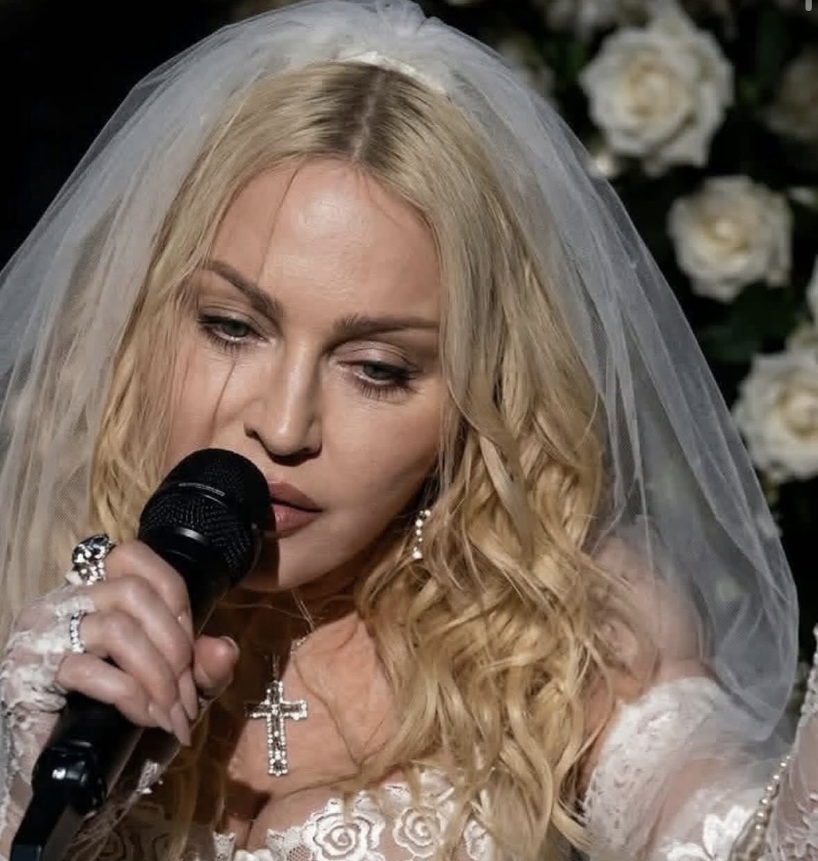 La interpretación fue profundamente emotiva: una orquesta completa acompañó la voz de Madonna, con el productor y músico Stuart Price al piano dirigiendo el arreglo musical. La versión, lenta y dramática, transformó el clásico en una pieza casi operática, donde cada nota resonaba con una intensidad íntima que dejó al público en absoluto silencio mientras Madonna compenetrada interpretaba la canción bajo una lluvia de pétalos de rosa.