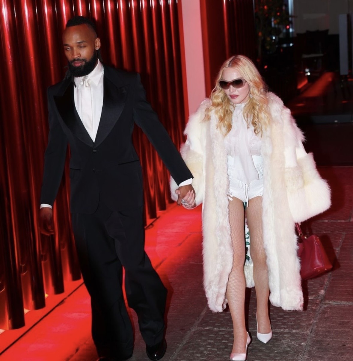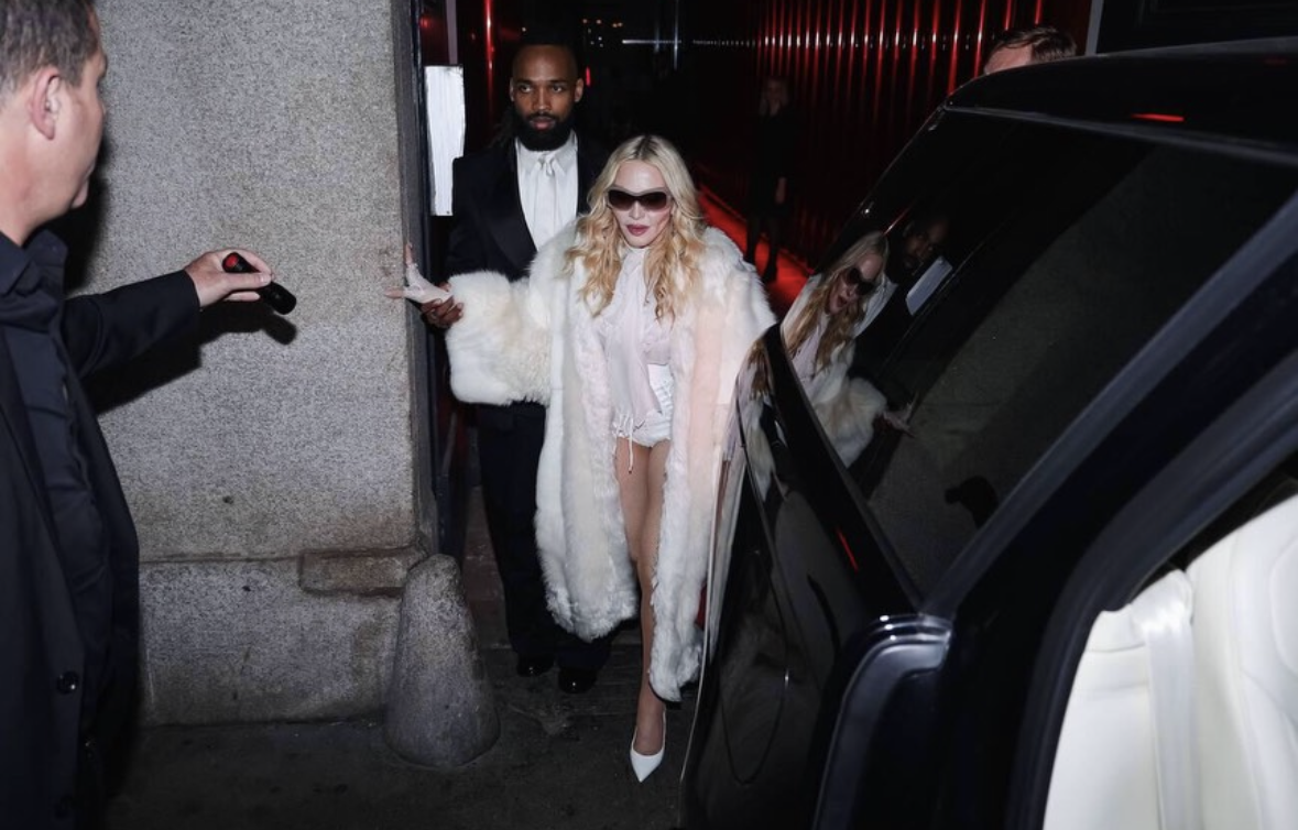 Durante la última semana de febrero, Milán fue escenario de un momento inesperado y profundamente evocador cuando Madonna apareció como invitada de honor en la exclusiva fiesta privada organizada por los diseñadores de Domenico Dolce y Stefano Gabbana en su histórico palacete de la ciudad. El evento, se llevó a cabo en contexto de la «Milan Fashion Week» en la que Madonna fue una de las principales invitadas. Luego de presenciar el desfile de la última colección otoño-invierno 2026-2027 de la firma italiana, un reservado y selecto círculo de invitados del mundo de la moda, el arte y la música, se dieron cita para una inolvidable «after party». Madonna llegó acompañada de su novio Akeem Morris, luciendo un atuendo enteramente blanco consistente en minishort de cuero, bustier y camisa de seda semitransparente con un gran moño al cuello, zapatos de tacón y un impresionante tapado largo de piel.