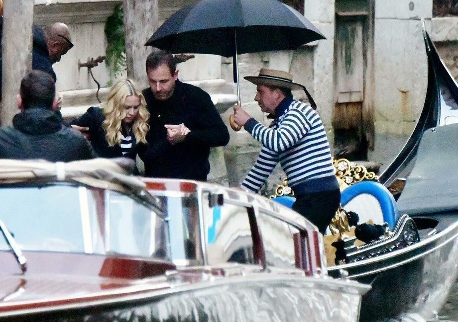 A pesar de los rumores que habían comenzado a circular que Madonna y Guy Oseary serían los organizadores de la fiesta «post-Oscars«, la propia cantante desmintió estas versiones mostrándose muy concentrada en la ciudad de Venecia. El día domingo 15 de marzo, la Divina llegó a la onírica ciudad italiana via jet privado y directamente desde el aeropuerto «Marco Polo» fue transportada por vaporetto hacia el set de filmación la serie «The Studio». Madonna luciendo un tapado largo de piel sintética, sombrero y gafas fue llevada directamente y rodeada por un gran operativo de seguridad hacia el sitio en donde se está realizando la grabación de la segunda temporada de la serie de Apple TV ganadora del «Emmy». Allí mismo, Madonna se encontró con Julia Gardner (amiga y protagonista de «The Studio») y Michael Keaton. Durante el primer día la visita de Madonna al set se manejó con el más profundo hermetismo pero muchos medios comenzaron a difundir el rumor de que Madonna estaría por grabar algunas escenas de la serie.
