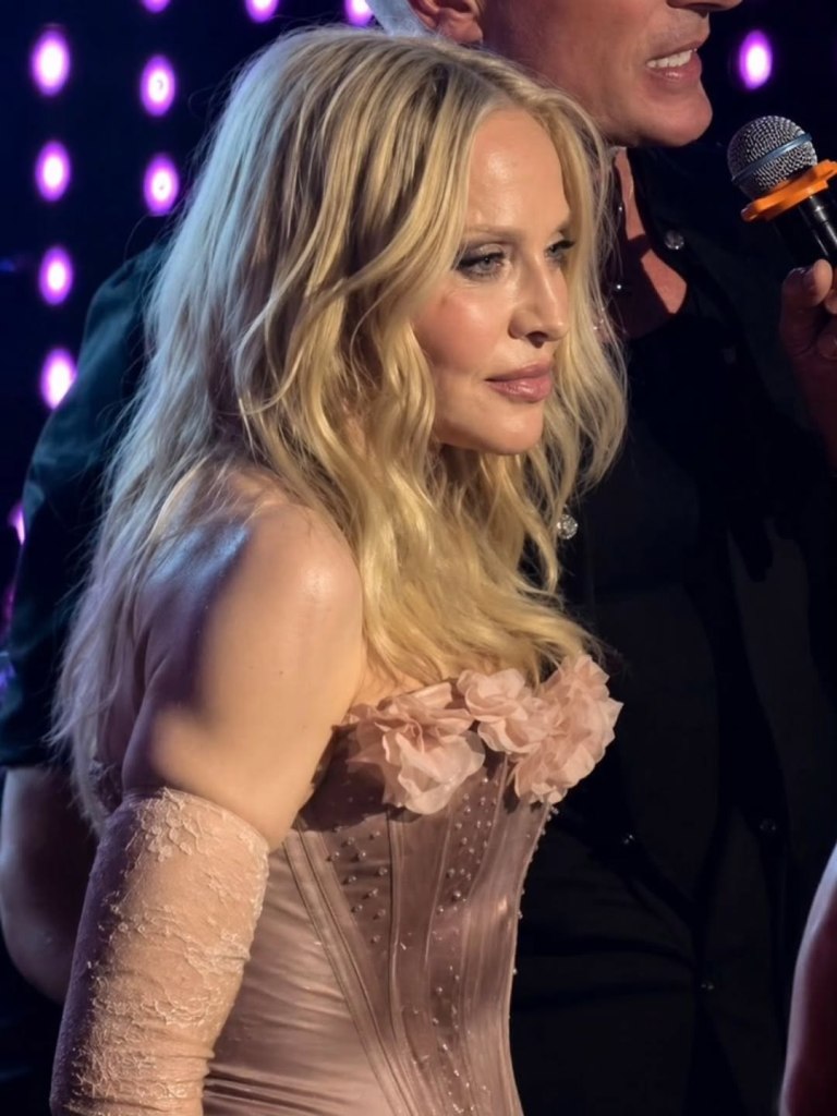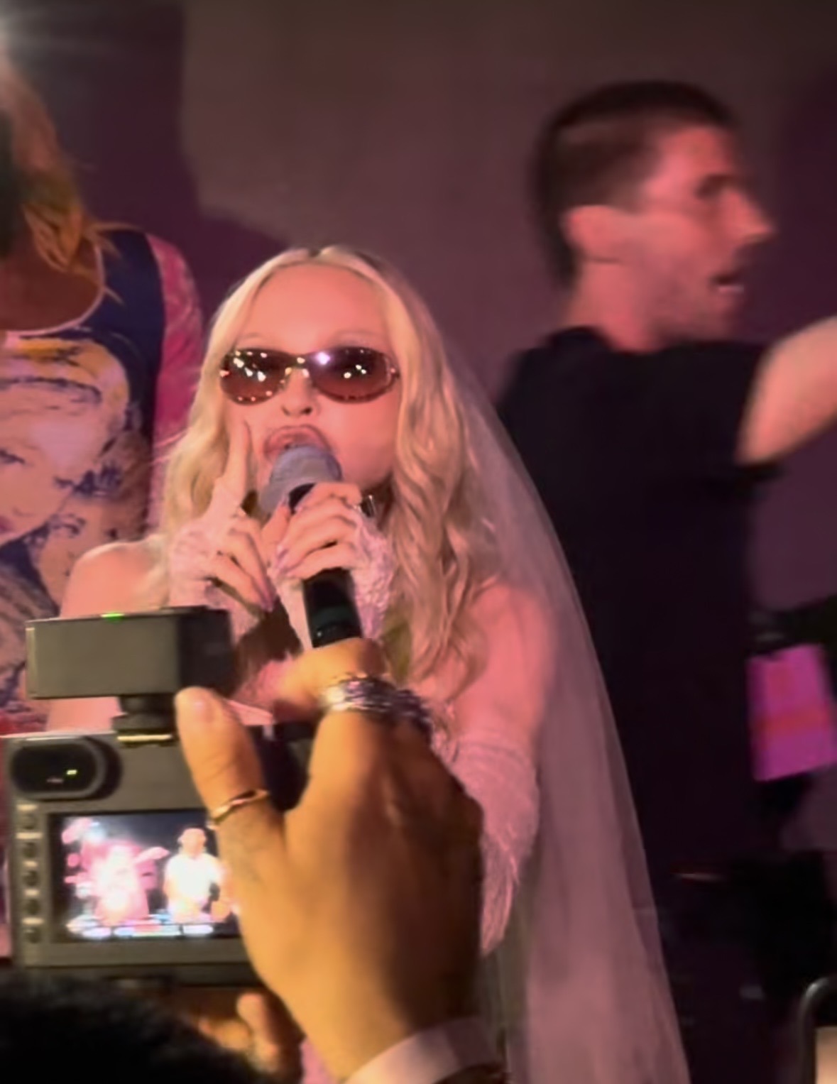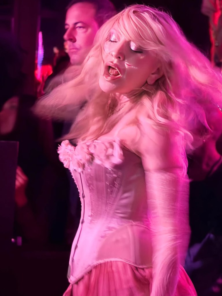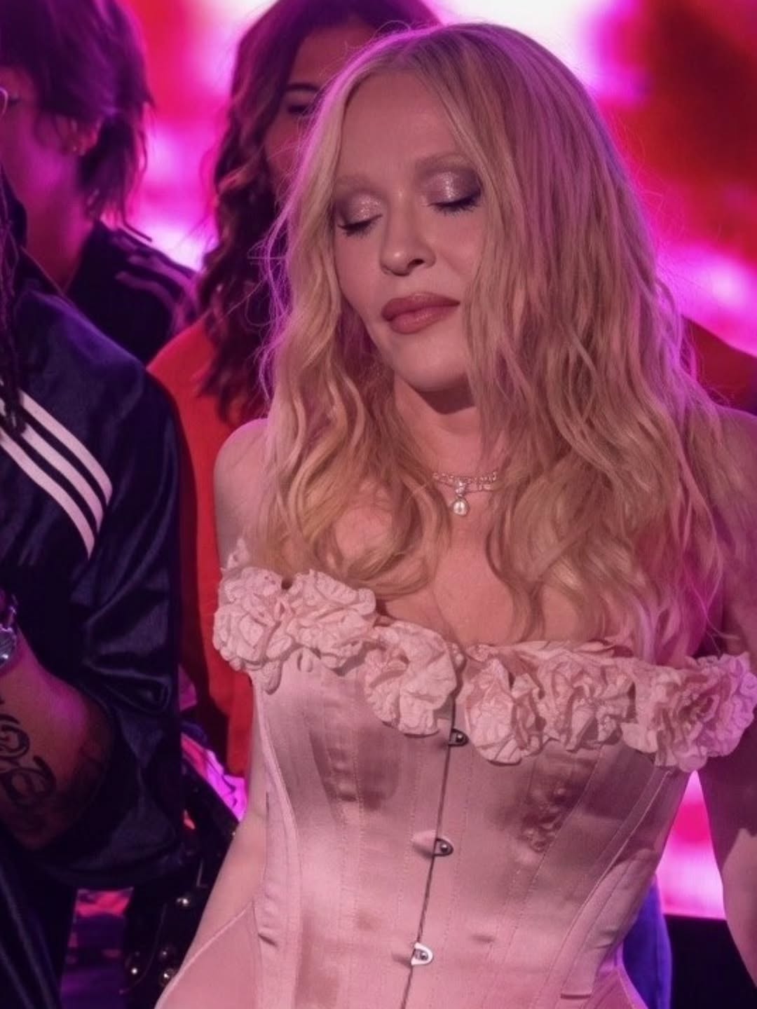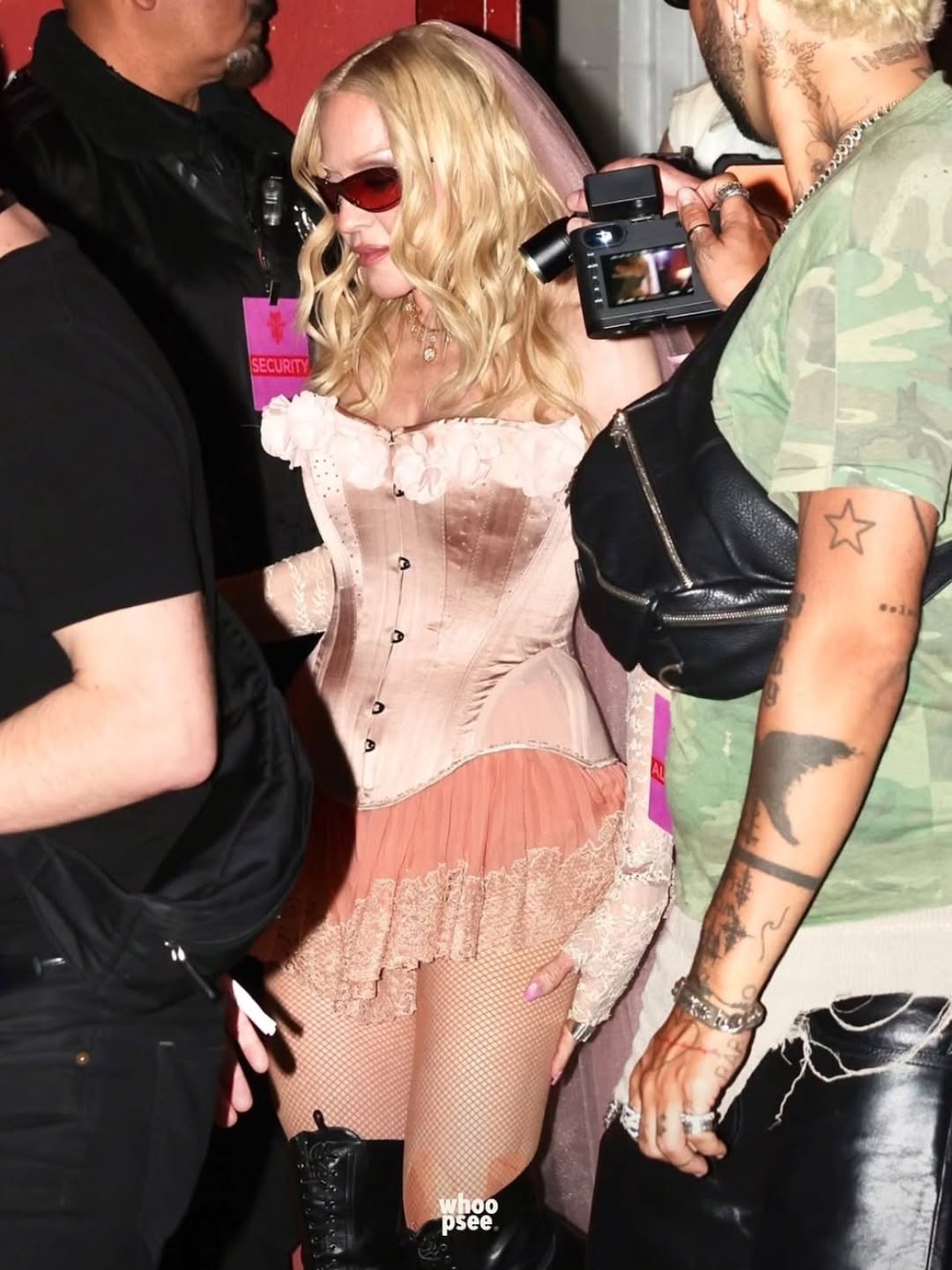 Entre la multitud se pudo ver a Lily Allen, Julia Fox, Kevin Huvane de CAA, las estrellas de «RuPaul’s Drag Race» Symone y Eureka, el exmarido de Britney Spears, Sam Asghari y Tori Spelling. A Madonna se le unieron en la cabina su novio futbolista y modelo, Akeem Morris, y su agente y amiga íntima Maha Dakhil. La pista de baile estaba llena de codo con codo con algunos fiesteros que se volvían demasiado agresivos, empujando a la gente mientras intentaban acercarse a la cabina del DJ lo que obligó a la seguridad del lugar a sacar a algunos participantes rebeldes. En un momento, Madonna deseó «feliz cumpleaños» a Schukraft, propietario de «The Abbey»; «¿Queremos bajarle los pantalones y azotarlo?» preguntó Madonna al público, aunque Schukraft se mantuvo completamente vestido mientras ella lo golpeaba juguetonamente en el trasero mientras le cantaban el «Feliz cumpleaños».